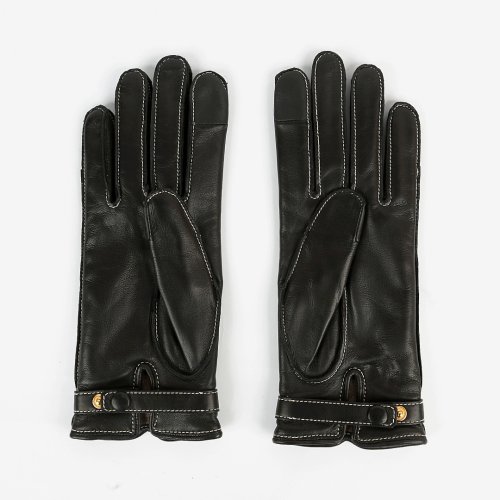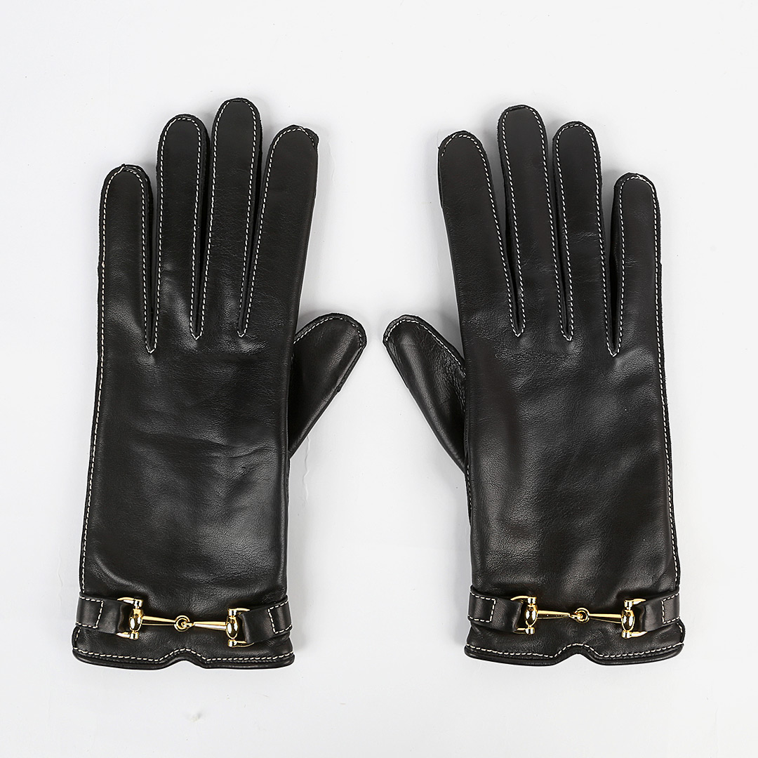 Перчатки от французского бренда AGNELLE сшили контрастными нитками из мягкой кожи. Для подклада выбрали нежный кашемир. Украсили изделие элегантной пряжкой-трензелем.