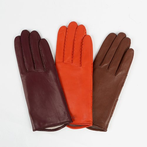 Перчатки кожаные на шелковой подкладке AMAL/S/WH