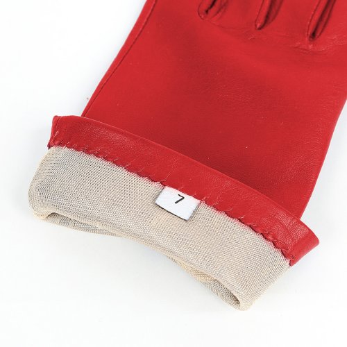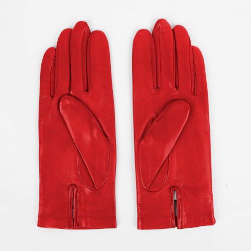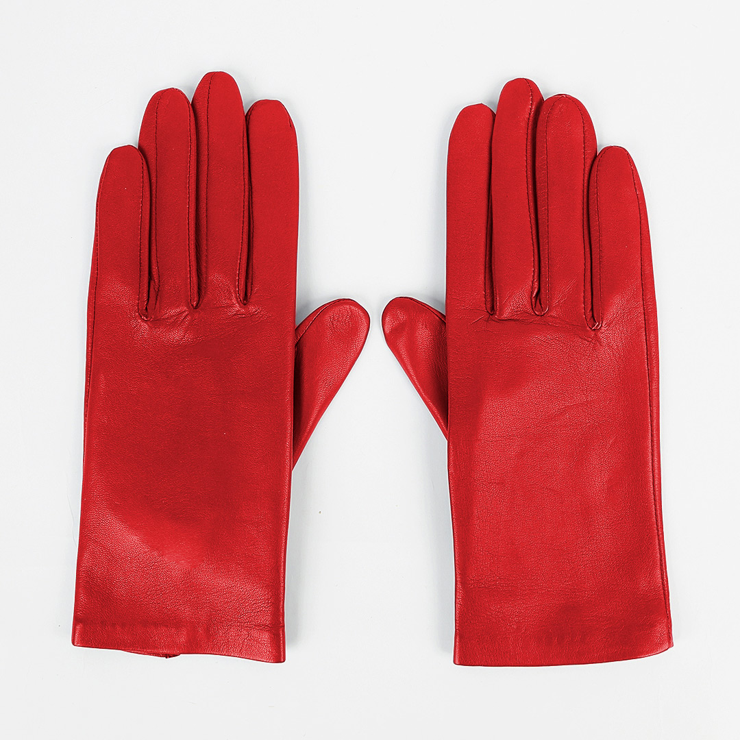 Красные перчатки от французского бренда AGNELLE добавят ярких красок в серые будни холодного сезона. Для создания модели с разрезом на манжете выбрали тонко выделанную натуральную кожу. Дополнили аксессуар шелковым подкладом.