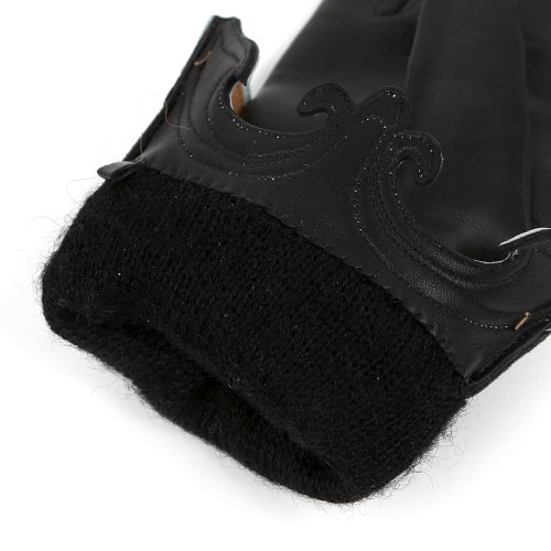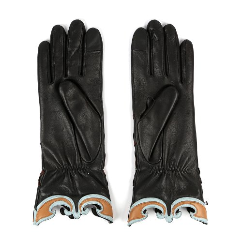 Перчатки кожаные с аппликацией на шерстяной подкладке MINA3/A/WHI
