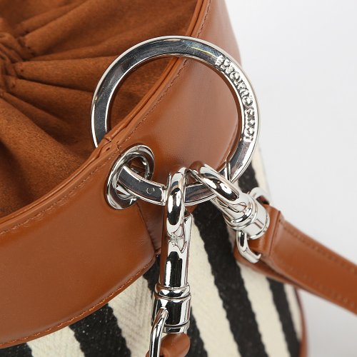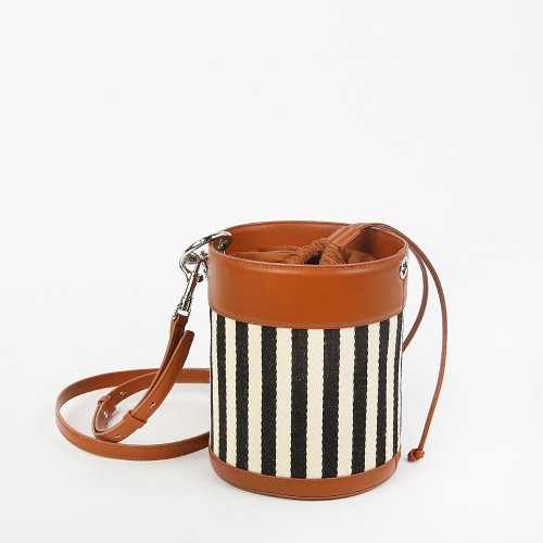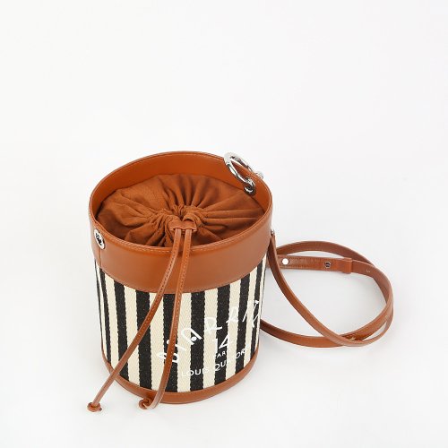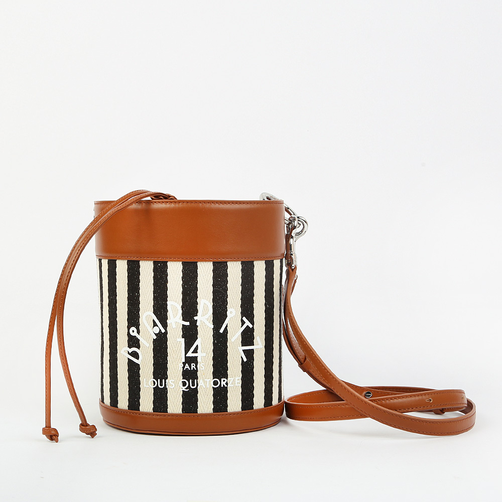 Сумка-ведерко BIARRITZ от корейского бренда LOUIS QUATORZE отличается необычным силуэтом и сохраняет вместительность при компактных размерах. Полосатый текстильный корпус визуально вытягивает силуэт сумки, эффектно гармонируя с кожаным основанием и верхом, который затягивается шнуром. В комплекте – съемный плечевой ремень.