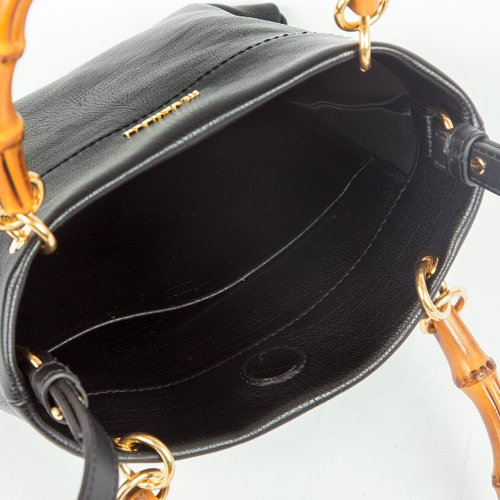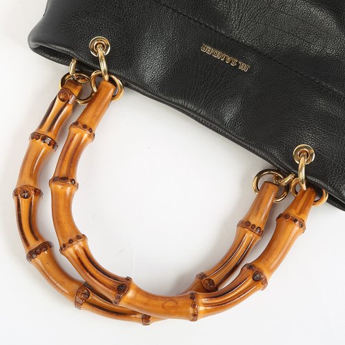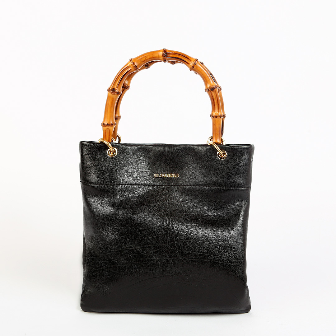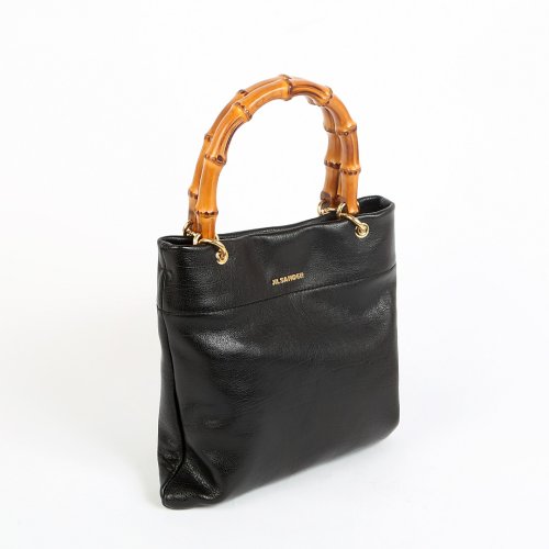 Сумка от итальянского бренда JIL SANDER имеет квадратную форму и выполнена в благородном черном цвете. Особого шарма модели из крупнозернистой натуральной кожи придают бамбуковые ручки. Внутри изделия просторное отделение, дополнительный карман и магнитная застежка.