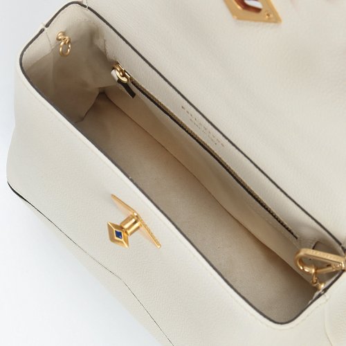 Сумка от итальянского бренда BALLANTYNE любой образ сделает более выразительным. Модель в белом цвете сшили из натуральной крупнозернистой кожи с черной окантовкой. Внутри аксессуара с поворотной застежкой предусмотрели карман на молнии. В комплект входит съемный плечевой ремень.