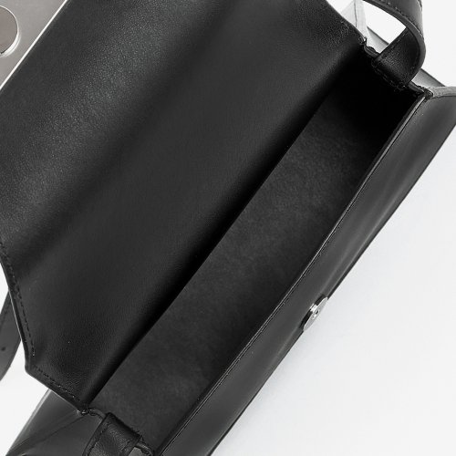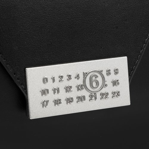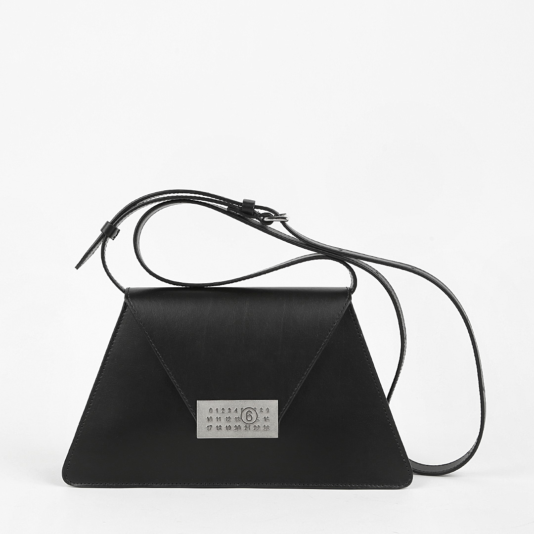 Сумка NUMBERS от MM6 MAISON MARGIELA имеет трапециевидную форму. Для пошива модели с плечевым регулирующимся ремнем использовали натуральную гладкую кожу с деликатным блеском. Клапан аксессуара дополнили металлической бляшкой в виде логотипа бренда.