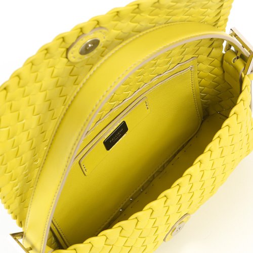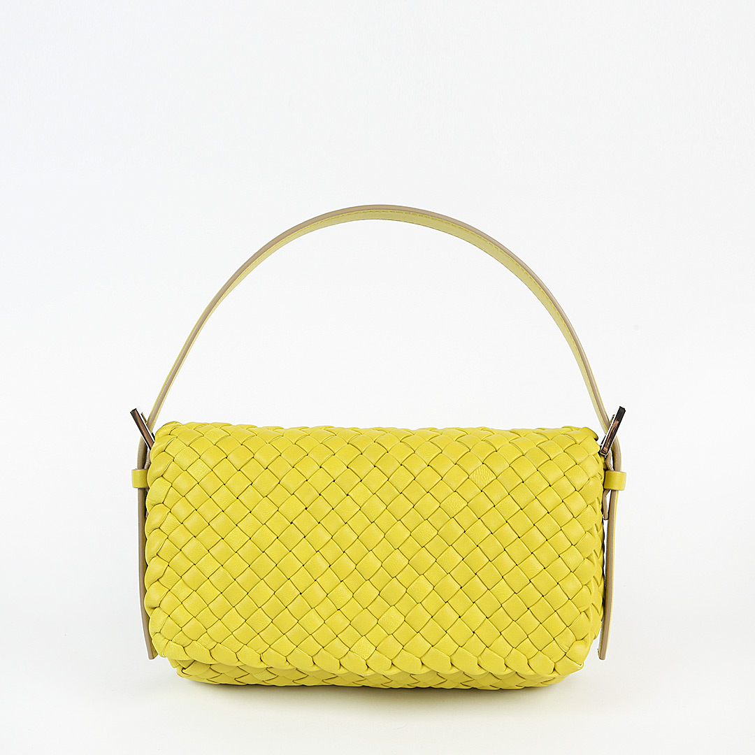 Сумка от итальянского бренда FALORNI создана для тех, кто живет в ритме города. Для изготовления модели использовали натуральную плетеную кожу яркого лимонного оттенка. Застегивается изделие с внутренним карманом на магнитную кнопку.