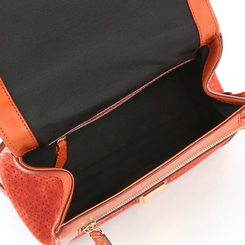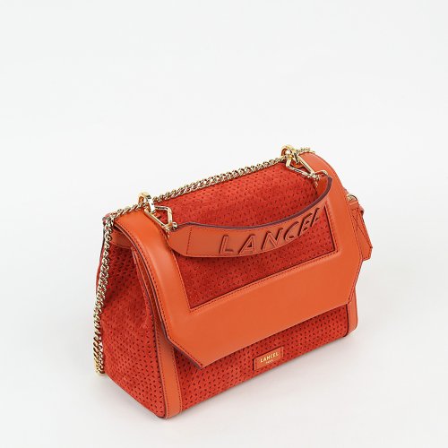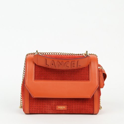 Сумку NINON от бренда LANCEL сшили из перфорированной натуральной кожи и замши. Модель имеет два кармана на молнии, короткую съемную ручку с логотипом и плечевой ремень-цепочку. Внутри – прочная текстильная подкладка.