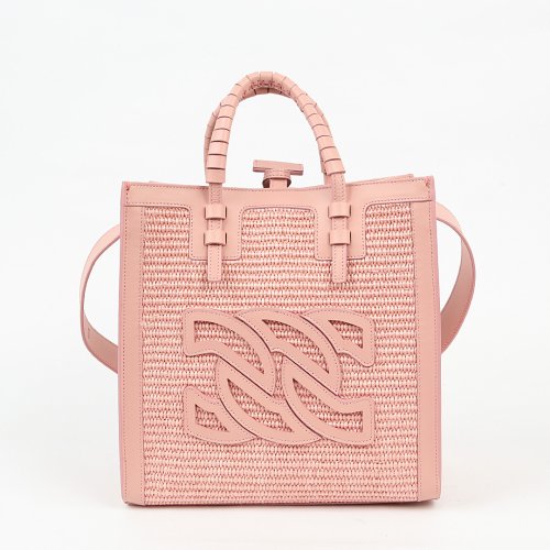 CASADEI предлагает своё видение женской силы — в розовом оттенке и строгой геометрии. Сумку выполнили из натуральной кожи и рафии, а для подкладки выбрали нежный шелк. Внутри – дополнительный карман на молнии.