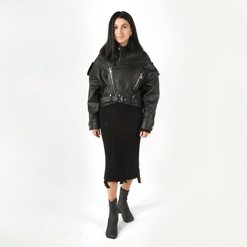 Куртка кожаная на молнии VINTAGE/OVERSIZED/JACKET/BL
