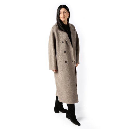 Savina — классическое шерстяное пальто без подкладки ARMA, выполненное в спокойном серо-бежевом оттенке и в характерном для бренда архитектурном силуэте. Мягкая фактура шерсти создаёт ощущение тёплой тактильности, а продуманный прямой крой делает модель универсальной и вневременной.