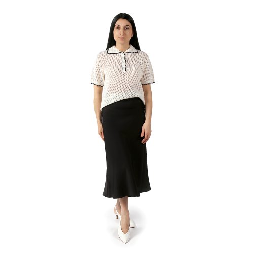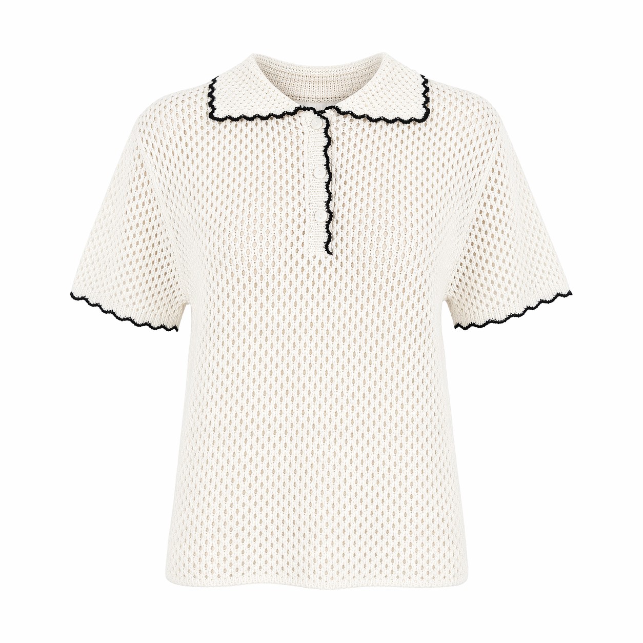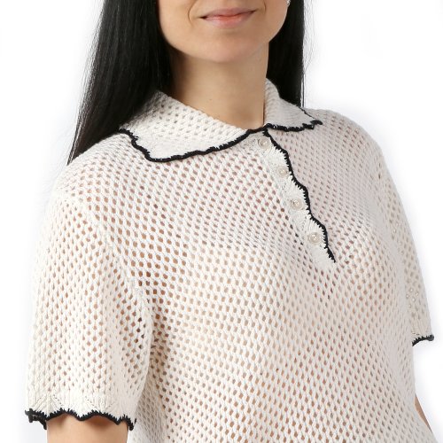Ажурная трикотажная рубашка - поло молочного оттенка с коротким рукавом.