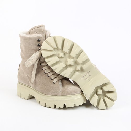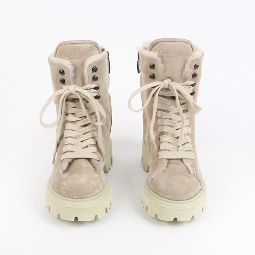 Утепленные овчиной, бежевые ботинки SOFTY от JUDARI обладают особым шармом. Благодаря натуральной замше они обеспечивают комфорт в течение всего дня. Для непринужденного повседневного образа сочетайте замшевые ботинки с широкими брюками и объемным свитером.