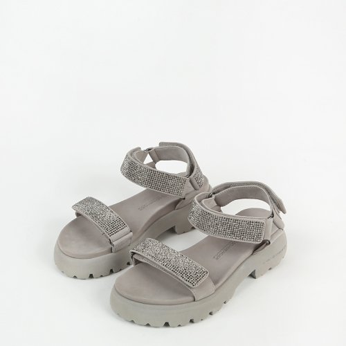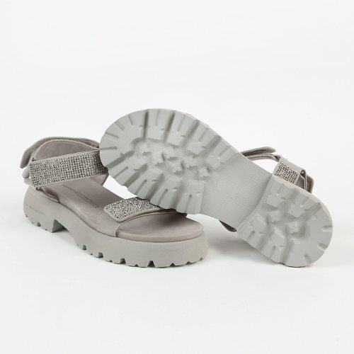 Серые сандалии SKILL от немецкого бренда KENNEL & SCHMENGER – самый удобный, стильный и практичный вариант обуви на теплое время года. Для пошива модели дизайнеры выбрали натуральный нубук. Ремешки, украшенные сияющими стразами это не только яркий акцент, но и функциональный элемент, обеспечивающий дополнительную поддержку и фиксацию стопы.