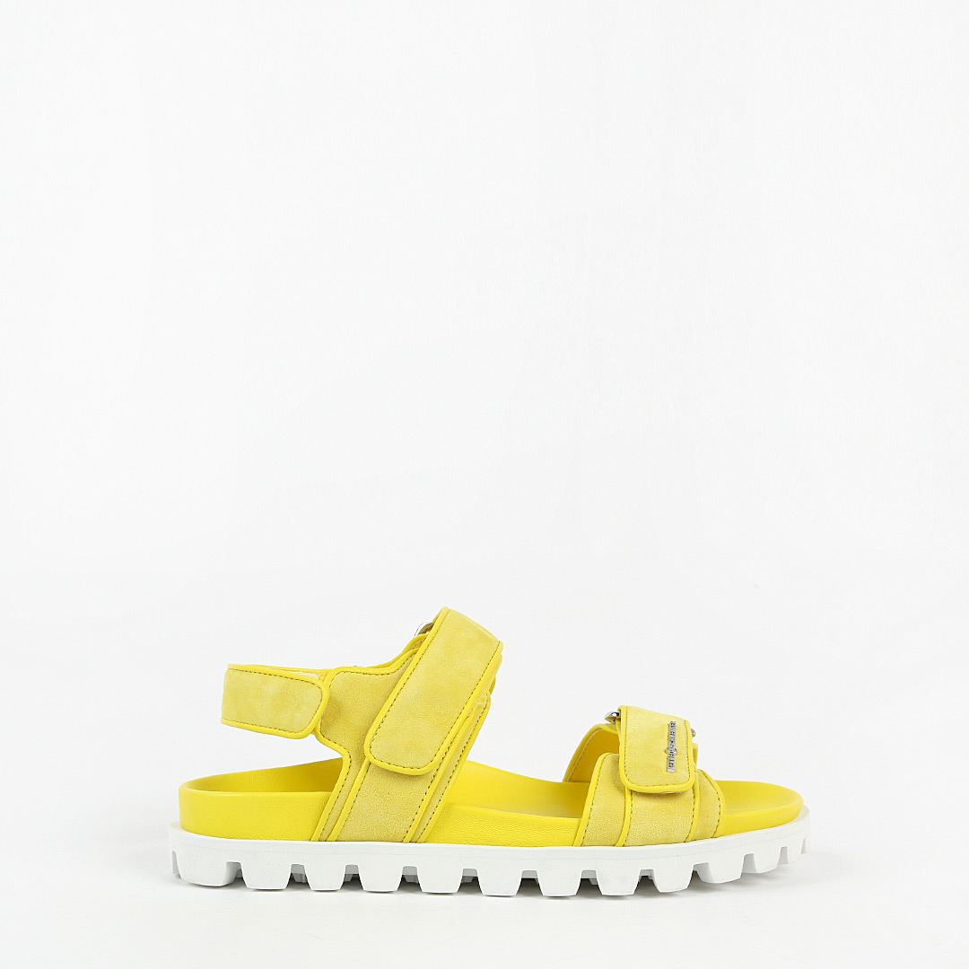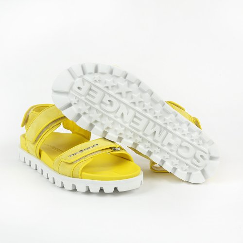Солнечные сандалии NET из натуральной замши от немецкого бренда KENNEL & SCHMENGER помогут создать веселый и игривый образ, который идеально подходит для лета. Модель выполнили из яркой замши желтого оттенка с неоновыми отливами. Широкая подошва с протектором помогает равномерно распределить нагрузку во время ходьбы.