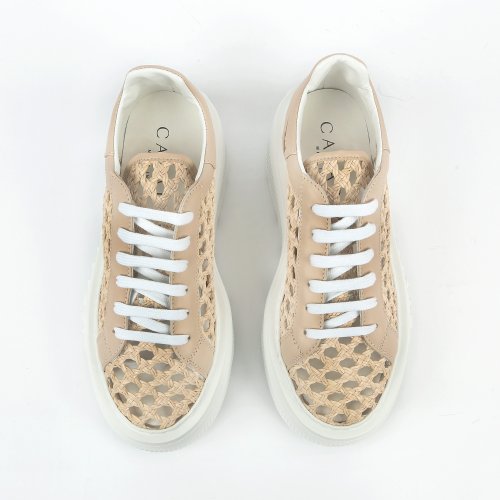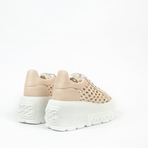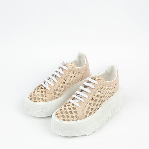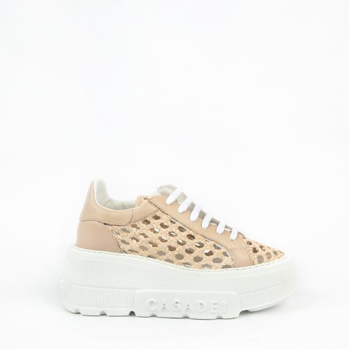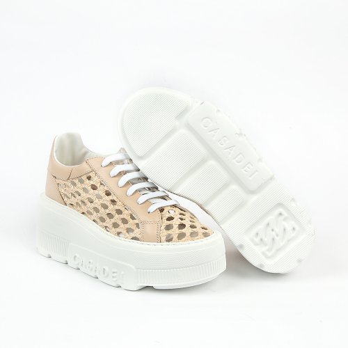 Итальянский бренд CASADEI вновь доказывает, что удобство может быть элегантным и стильным. Кроссовки выполнили из плетеной натуральной кожи универсального бежевого оттенка. Массивная белоснежная подошва с фирменной надписью CASADEI не только эффектно выглядит, но и обеспечивает комфорт при ходьбе.