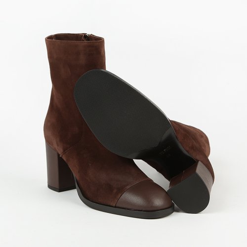 Полусапоги от итальянского бренда JUBILE – комфорт и стиль в одном флаконе. Мастера марки сделали акцент на контрасте материалов. Носок и каблук из натуральной кожи гармонично сочетаются с замшевой основой. Модель идеально подойдет для создания утонченных и стильных осенних образов.