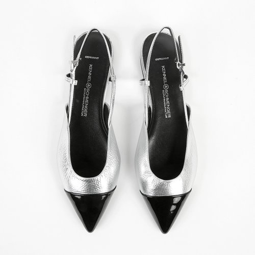 Босоножки GRETA от немецкого бренда KENNEL & SCHMENGER отражают новый тренд сезона на металлизированную кожу. Дизайнеры подчеркнули эффектное сияние модели контрастным черным носком актуальной треугольной формы. Тонкие ремешки легко регулируются по длине с помощью пряжки.