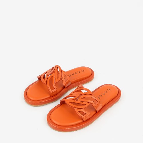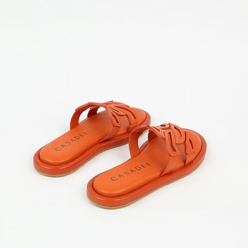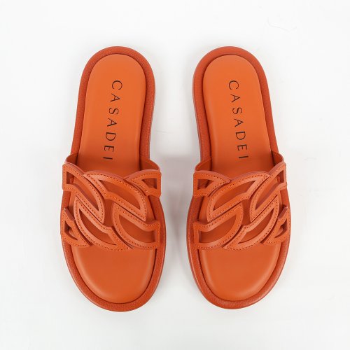 Шлепанцы от итальянского бренда CASADEI в ярком оранжевом оттенке добавят образам энергии и свежести. Главным декоративным элементом пары стал верх с фирменных узором в виде крупных звеньев цепи. Модель выполнена из качественной итальянской кожи, которая прослужит не один сезон.