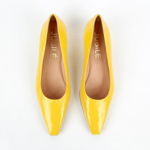 Туфли от итальянского бренда JUBILE – как лимонный щербет в летний полдень: освежают, вдохновляют и вызывают улыбку. Глянцевая лаковая кожа играет бликами при каждом движении, притягивая взгляды. Удлинённый носок придает элегантность, а миниатюрный каблук делает образ легким и изящным.